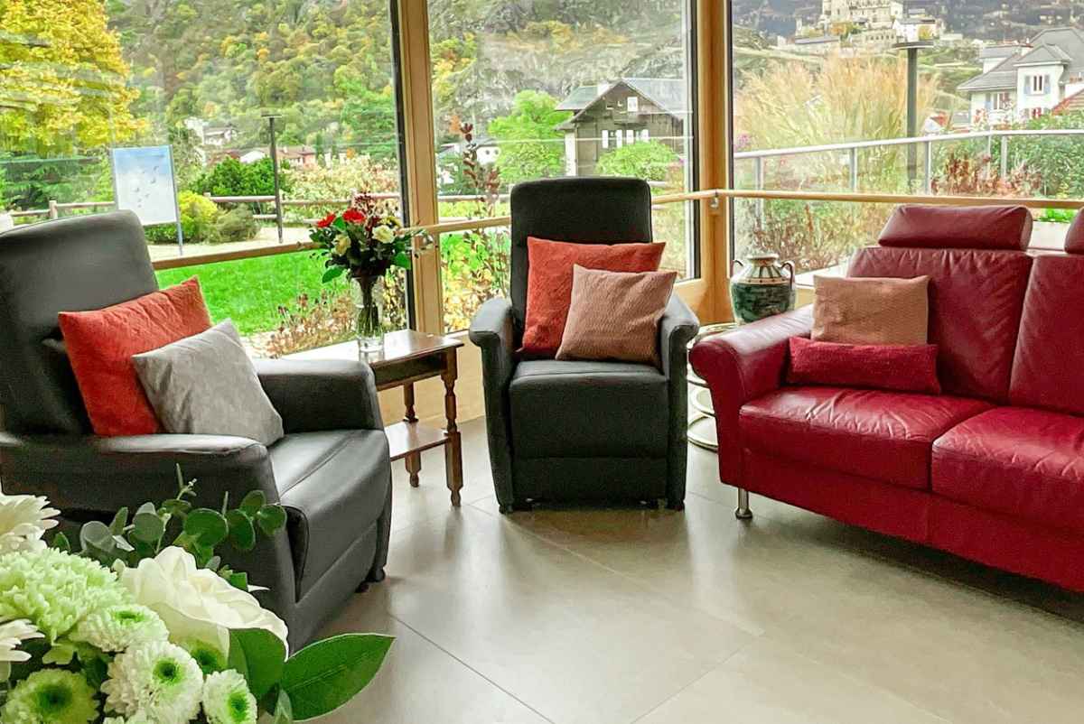 Découvrez notre Maison située au coeur d’un magnifique jardin avec vue sur les châteaux de Valère et de Tourbillon. Une véritable bulle de tranquillité sur les hauteurs de Sion où tout est entrepris pour que chaque résident·e se sente chez lui, chez elle.