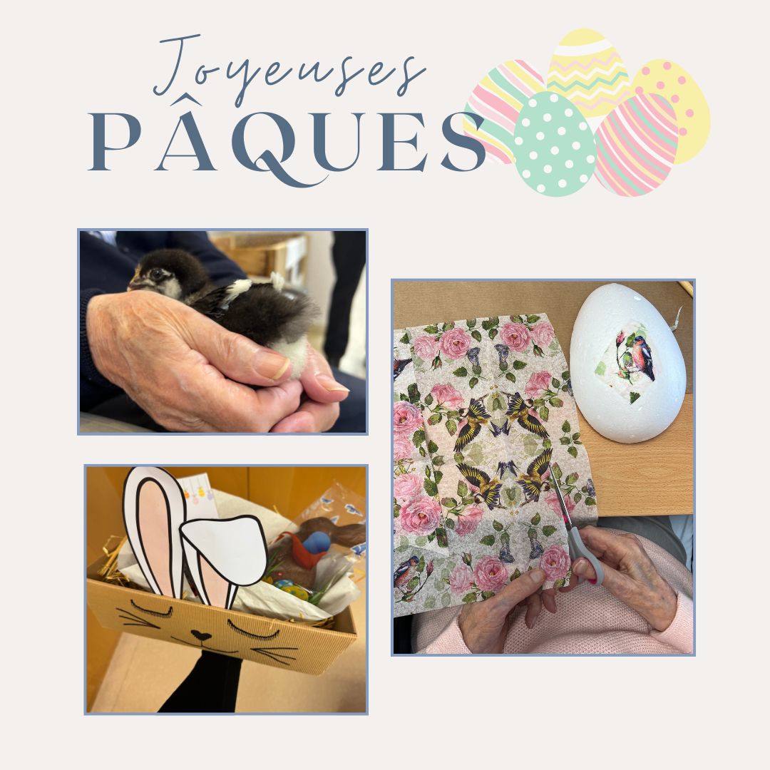 Des poussins apportés par une collaboratrice, des ateliers créatifs, des paniers gourmands soigneusement préparés par l’équipe d’animation à l’attention du personnel… et surtout, de précieux moments partagés entre résident·e·s, familles et professionnel·le·s.