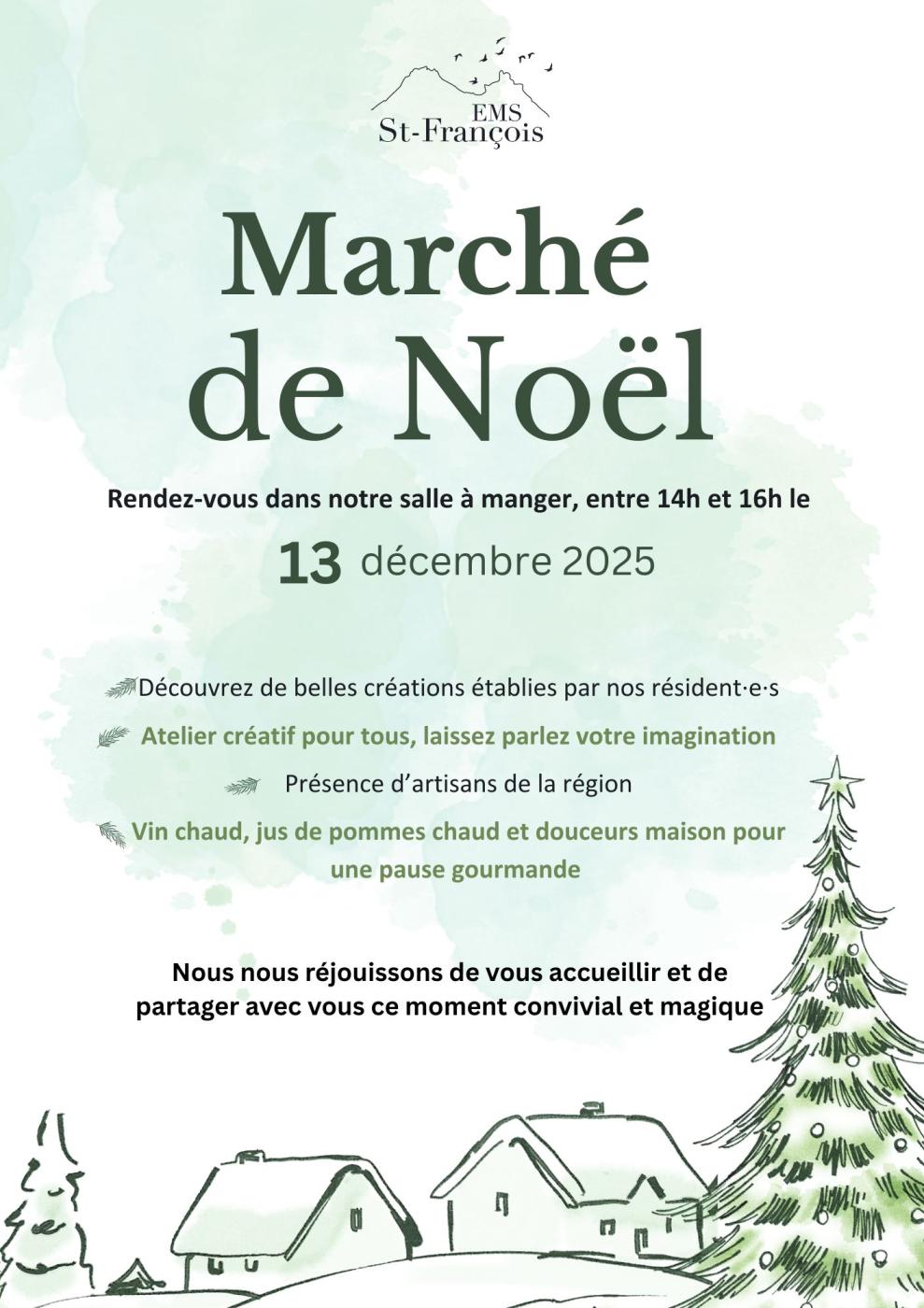 L'EMS accueillera son marché de Noël, un moment toujours attendu pour découvrir de belles idées et partager un peu de chaleur avant les fêtes.