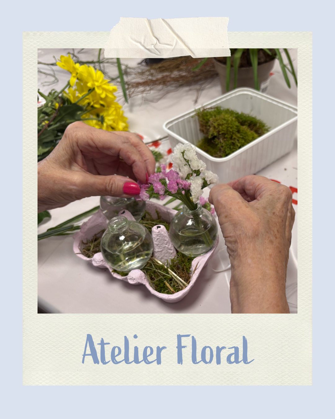 [lire la suite...]La semaine dernière, les résidentes et résidents de l'EMS St-François ont eu l'opportunité de participer à un magnifique atelier floral et de confectionner des arrangements floraux tout en délicatesse et en poésie. Un grand merci à Morgane de l'Atelier Floral pour ce beau moment. Belles fêtes de Pâques à toutes et à tous.